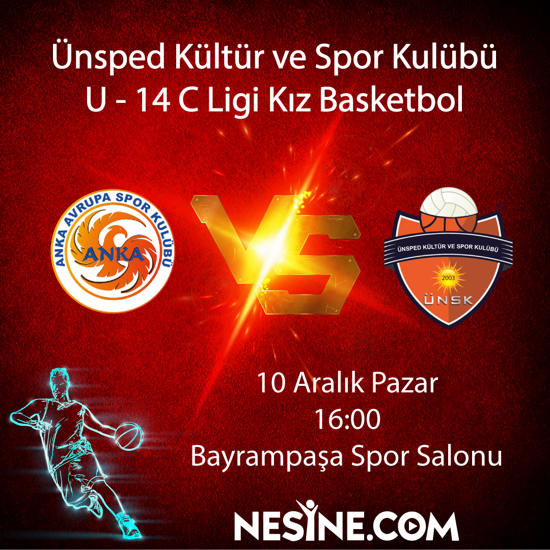 U-14 C Ligi Kız Basketbol Anka Avrupa Spor Kulübü vs Ünsped Kültür ve Spor KulübüTarih: 10 Aralık PazarSaat: 16:00Yer : Bayrampaşa Spor Salonu