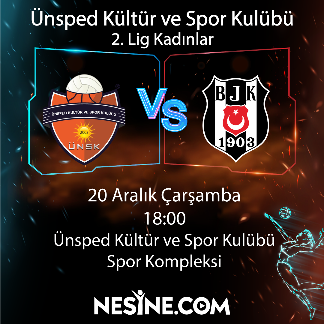 2.Lig Kadınlar Ünsped Kültür ve Spor Kulübü vs BeşiktaşTarih: 20 Aralık ÇarşambaSaat: 18:00Yer : Ünsped Kültür ve Spor Kulübü Spor Kompleksi