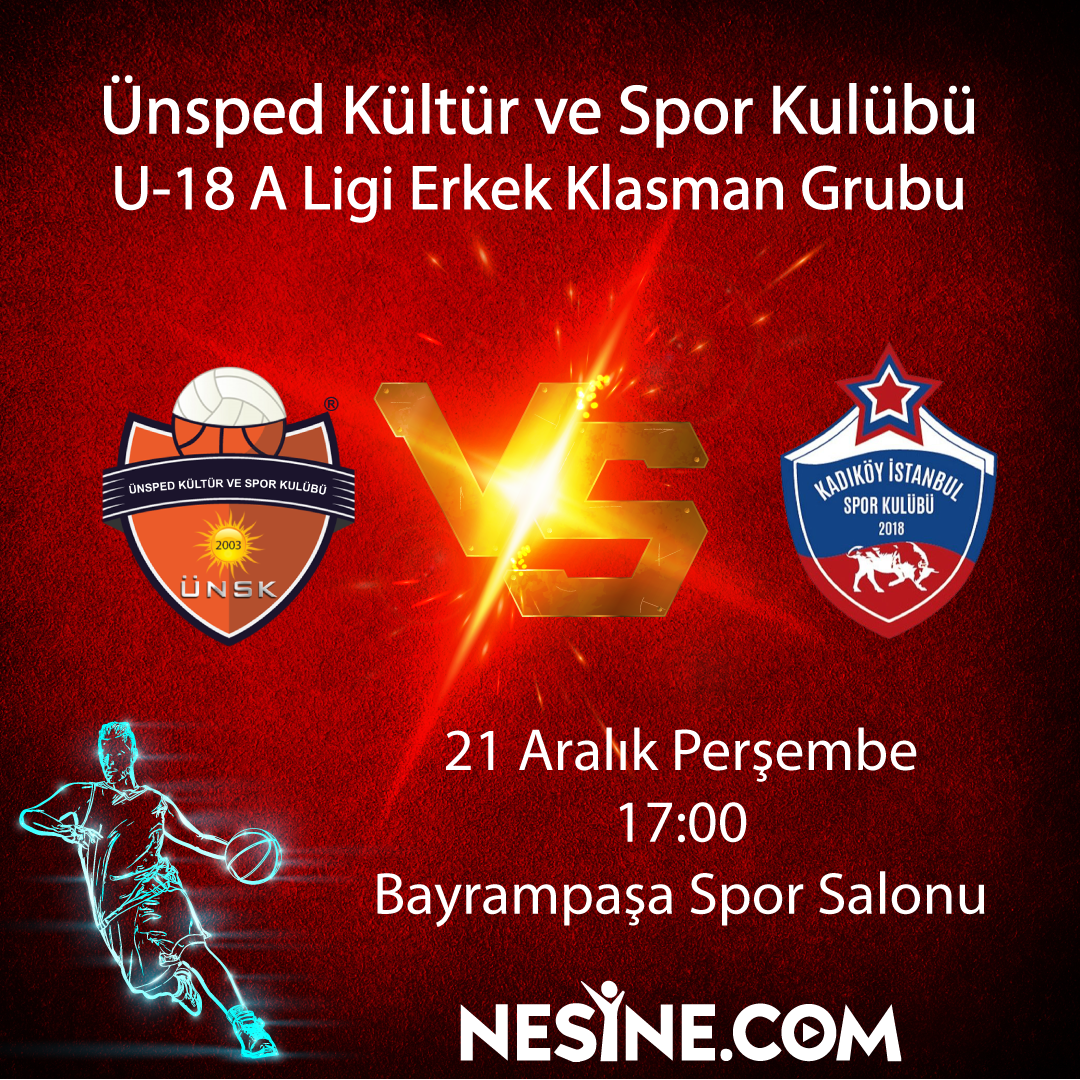 U-18 A Ligi Erkek Klasman Grubu Ünsped Kültür ve Spor Kulübü vs Kadıköy İstanbul Spor Kulübü Tarih: 21 Aralık PerşembeSaat: 17:00Yer : Bayrampaşa Spor Salonu