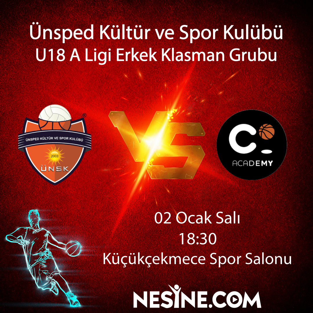 U 18 A Ligi Erkek Klasman GrubuÜnsped Kültür ve Spor Kulübü vs Cedi Osman AkademiTarih: 02 Ocak Salı (Bugün)Saat: 18:30Yer : Küçükçekmece Spor Salonu