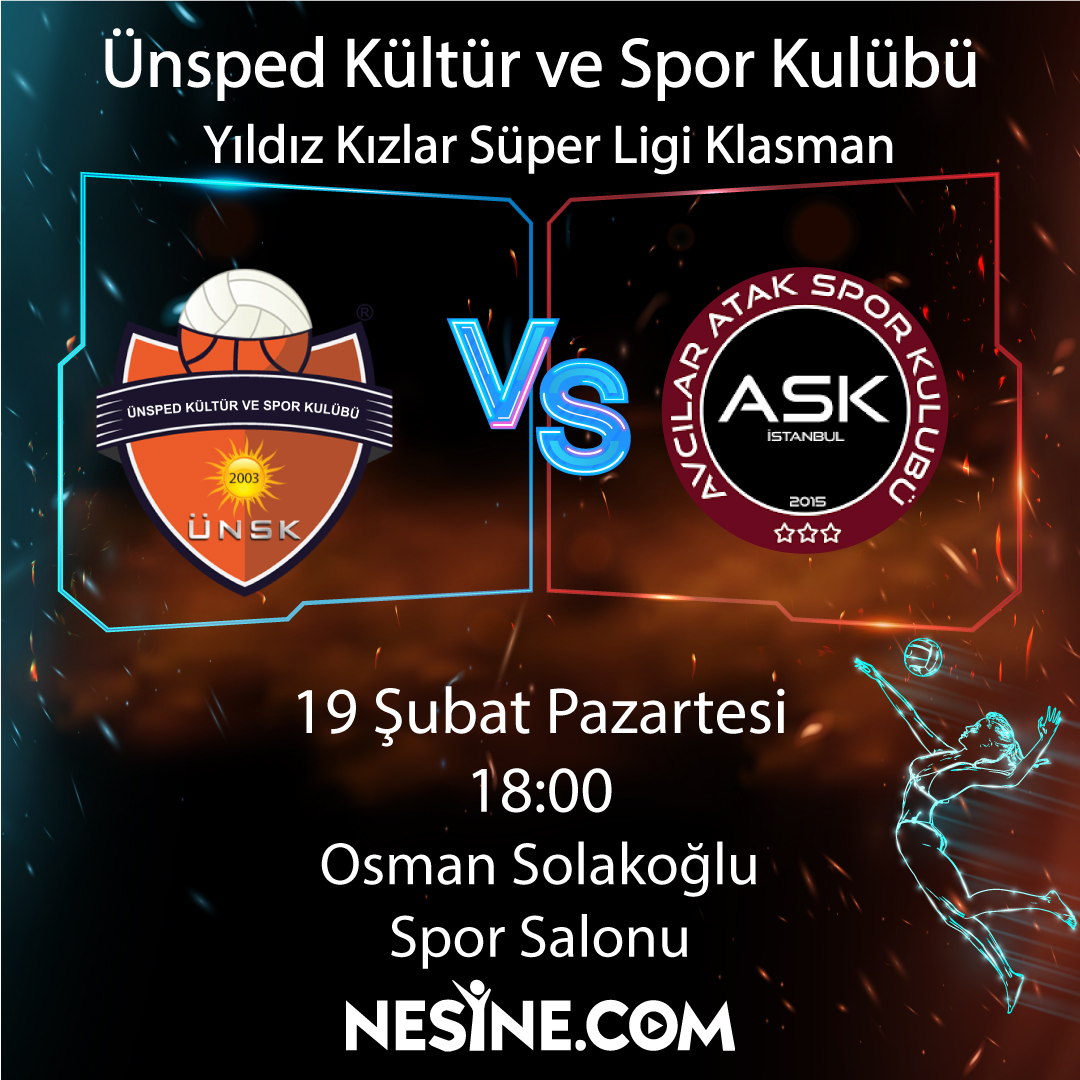 Yıldız Kızlar Süper Ligi KlasmanÜnsped Kültür ve Spor Kulübü vs Avcılar Atak Spor Kulübü ASK Tarih: 19 Şubat PazartesiSaat: 18:00Yer : Osman Solak Spor Salonu