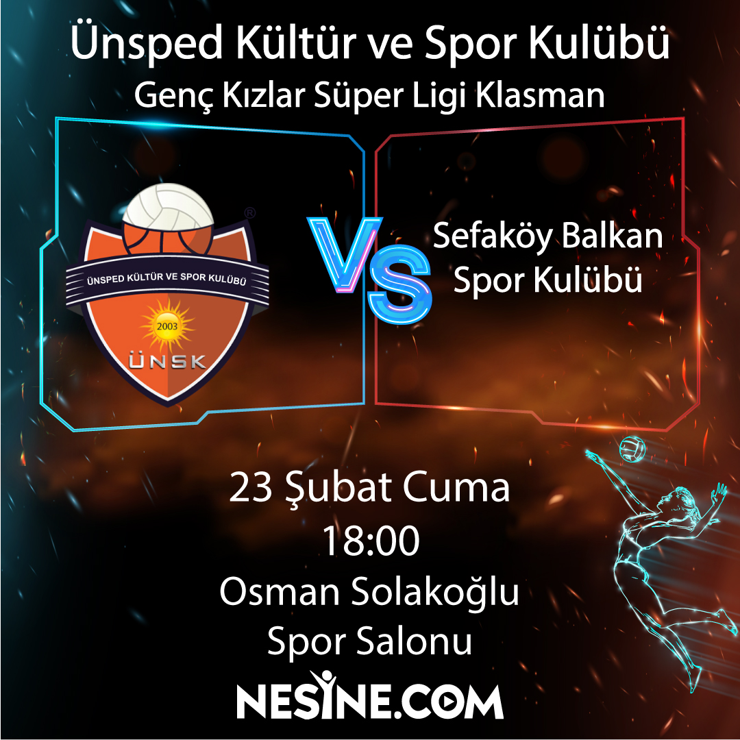 Genç Kızlar Süper Ligi Klasman Ünsped Kültür ve Spor Kulübü vs Sefaköy Balkan Spor Kulübü Tarih: 23 Şubat CumaSaat: 18:00Yer : Osman Solak Spor Salonu