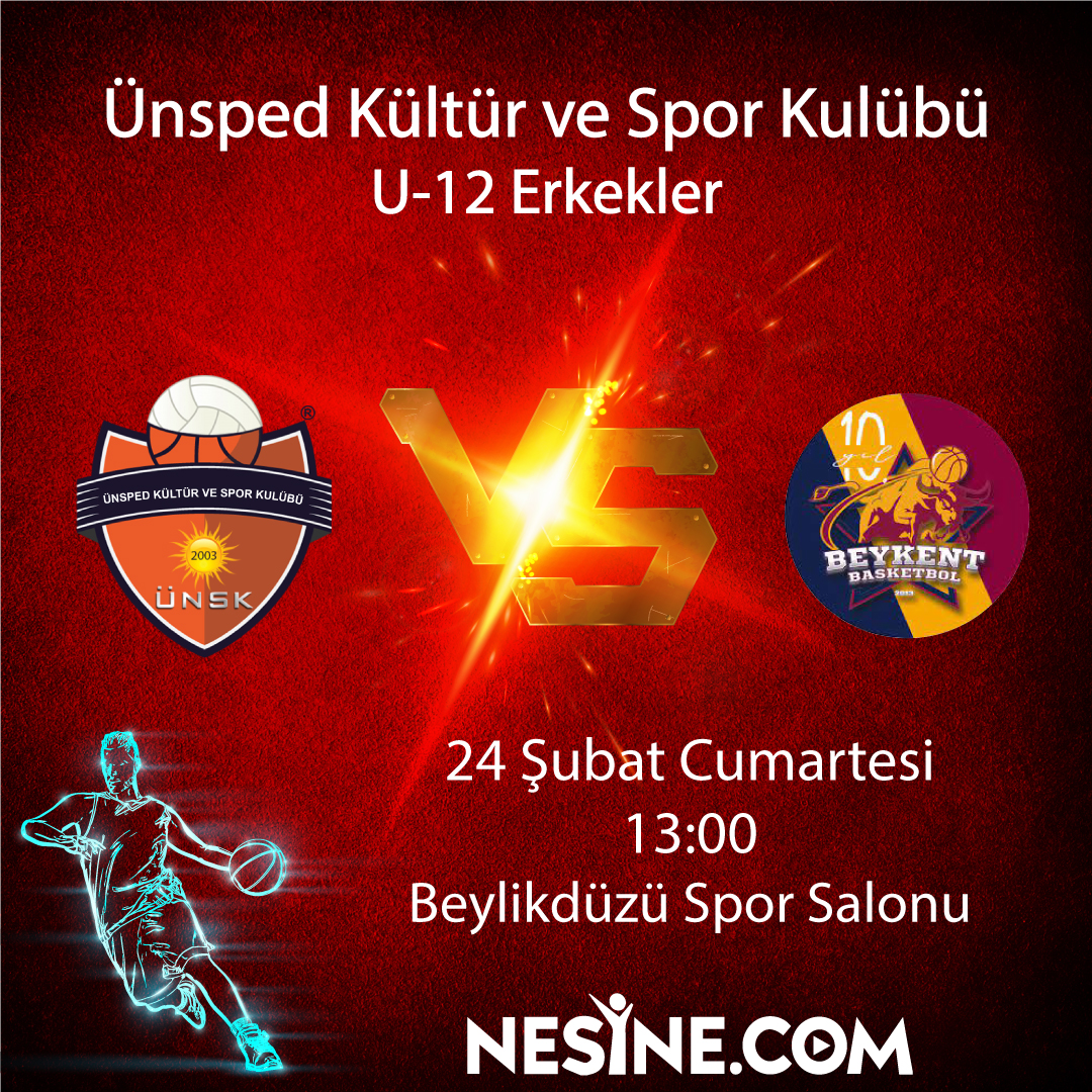 U-12 Erkekler Ünsped Kültür ve Spor Kulübü vs Beykent Basketbol Tarih: 24 Şubat CumartesiSaat: 13:00Yer : Beylikdüzü Spor Salonu