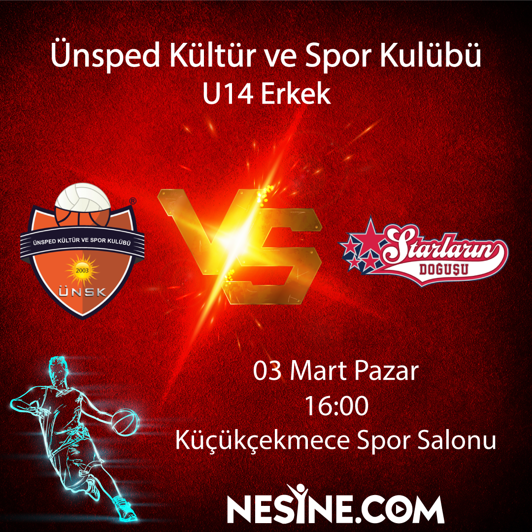 U14 ErkekÜnsped Kültür ve Spor Kulübü vs Starların Doğuşu Tarih: 03 Mart PazarSaat: 16:00Yer : Küçükçekmece Spor Salonu