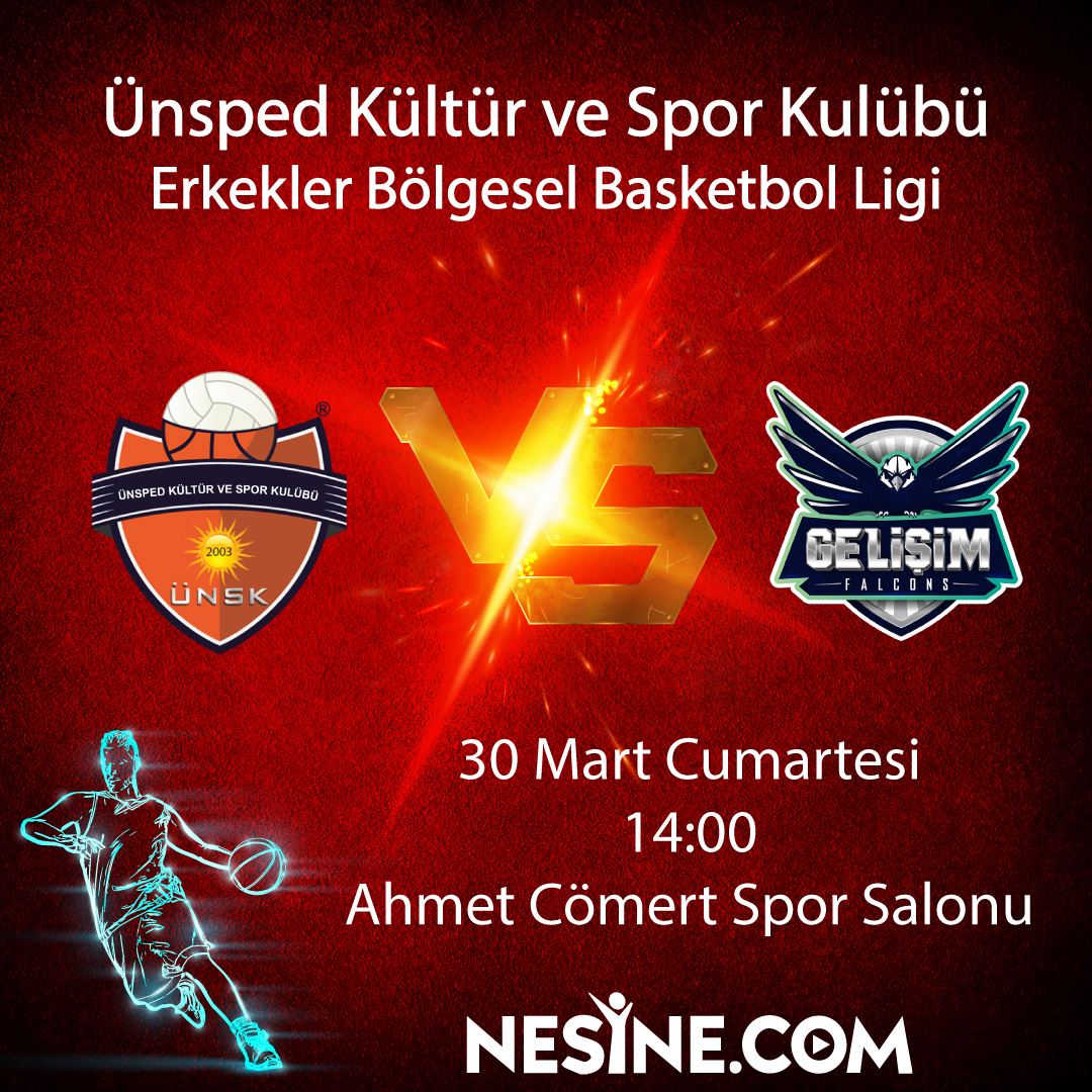 Takımını Yalnız Bırakma !Erkekler Bölgesel Basketbol Ligi Ünsped Kültür ve Spor Kulübü vs Gelişim Falcons Tarih: 30 Mart CumartesiSaat: 14:00Yer : Ahmet Cömert Spor Salonu