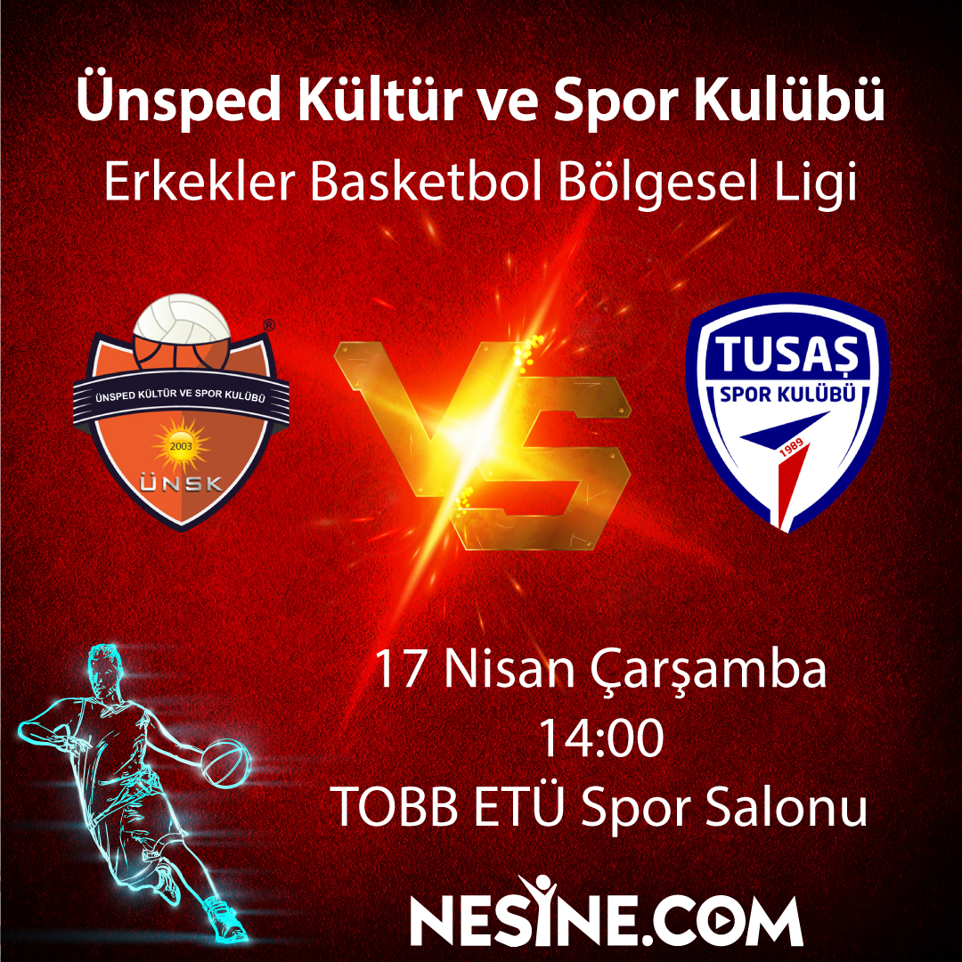 Erkekler Basketbol Bölgesel Ligi Ünsped Kültür ve Spor Kulübü VS TUSAŞ Spor KulübüTarih: 17 Nisan ÇarşambaSaat: 14:00Yer : TOBB ETÜ Spor Salonu