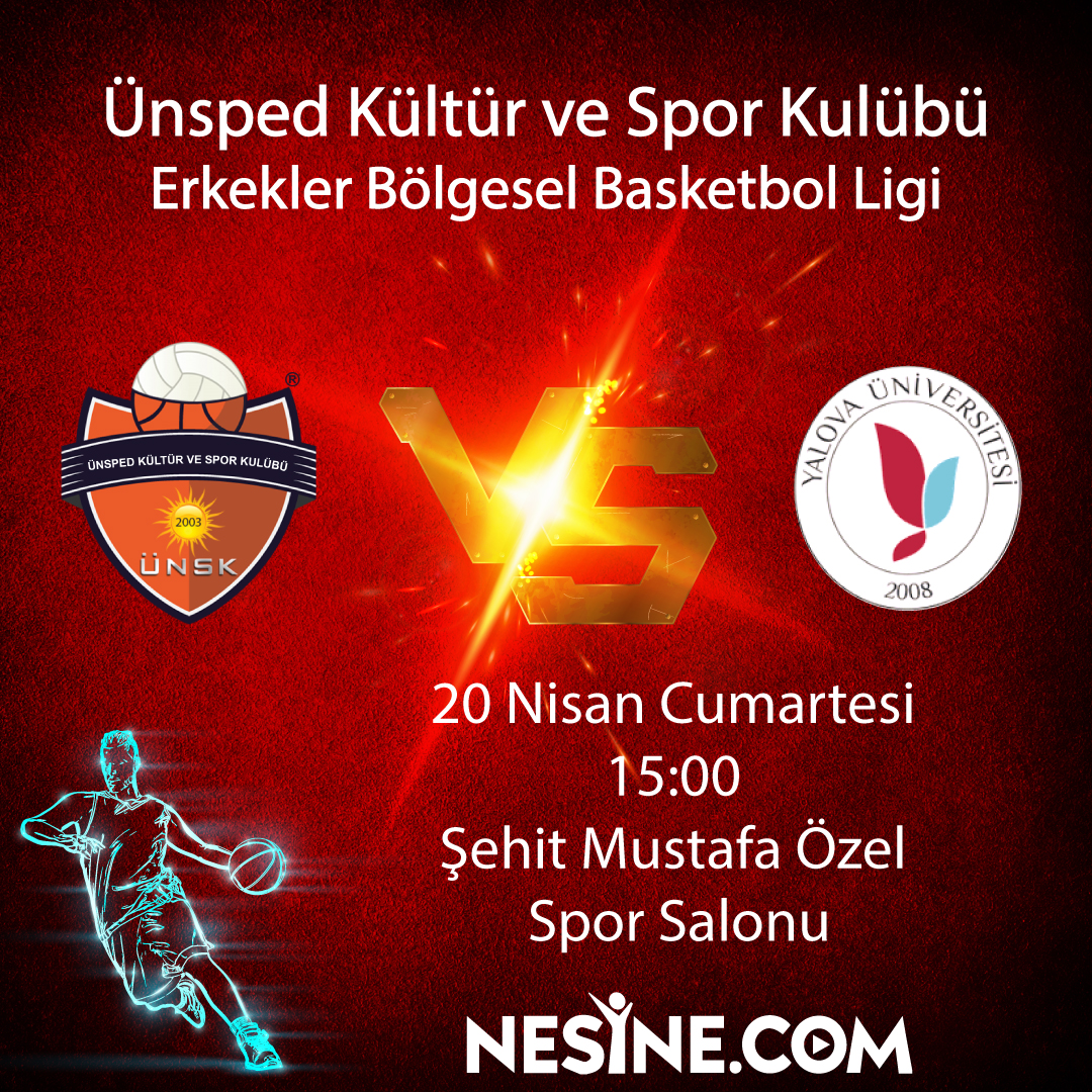 Erkekler Basketbol Bölgesel Ligi Ünsped Kültür ve Spor Kulübü vs Yalova Üniversitesi Tarih: 20 Nisan CumartesiSaat: 15:00Yer :Şehit Mustafa Özel Spor Salonu