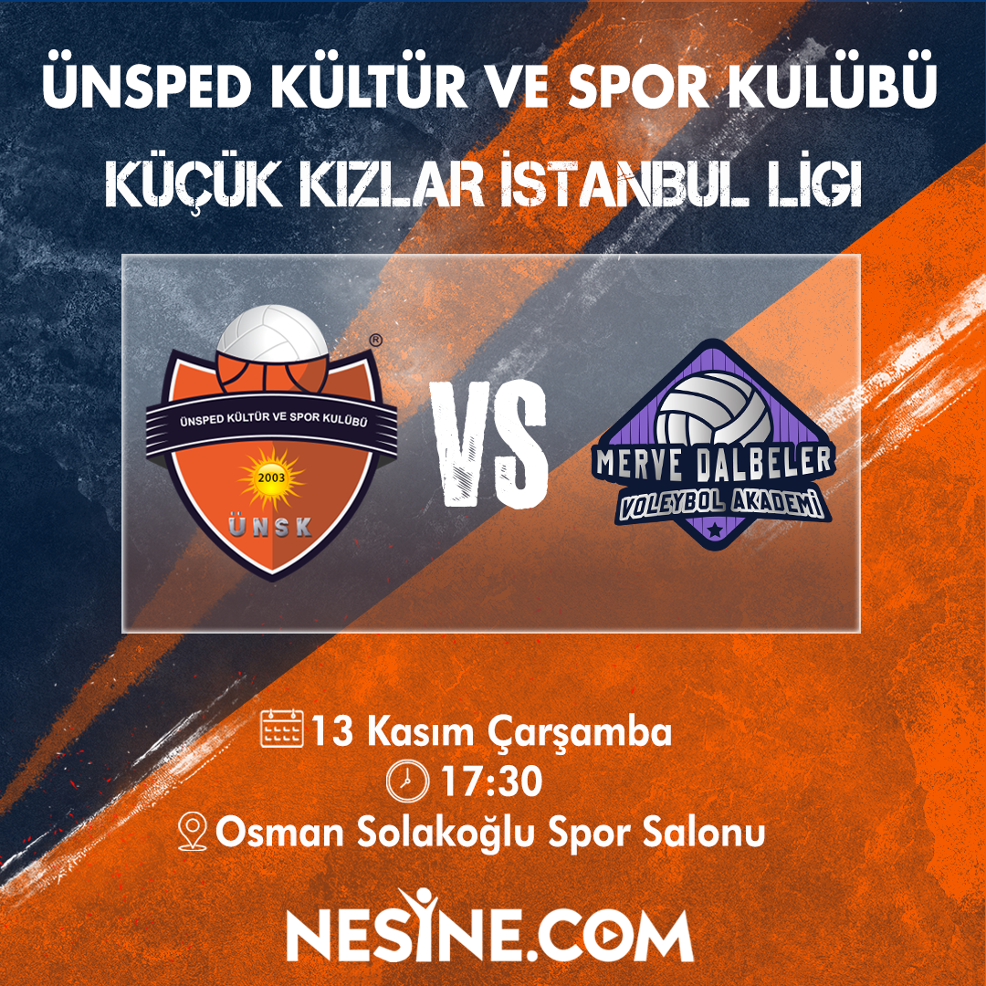 Küçük Kızlar İstanbul LigiÜnsped Kültür ve Spor Kulübü vs Merve Dalbeler Voleybol AkademiTarih: 13 Kasım Çarşamba Saat: 17:30Yer: Osman Solakoğlu Spor Salonu