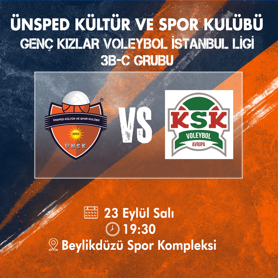 Genç Kızlar Voleybol İstanbul Ligi 3B-C Grubu Ünsped Kültür ve Spor Kulübü vs KSK Voleybol Avrupa Tarih: 23.09.2025 Saat : 19:30Yer: Beylikdüzü Spor Kompleksi