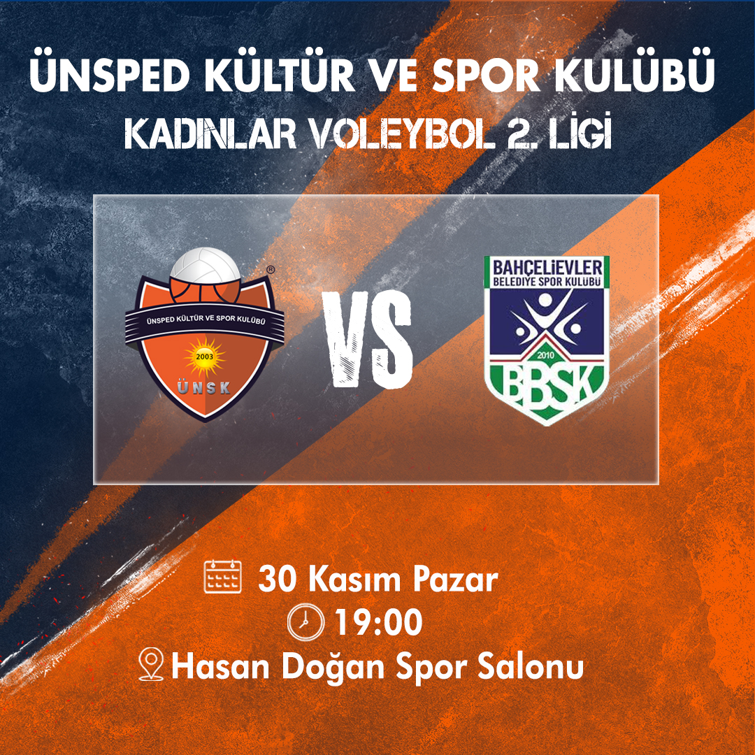 Kadınlar Voleybol 2.LigiÜnsped Kültür ve Spor Kulübü vs Bahçelievler Belediye Spor KulübüTarih: 30 Kasım Pazar Saat :19:00Yer: Hasan Doğan Spor Salonu