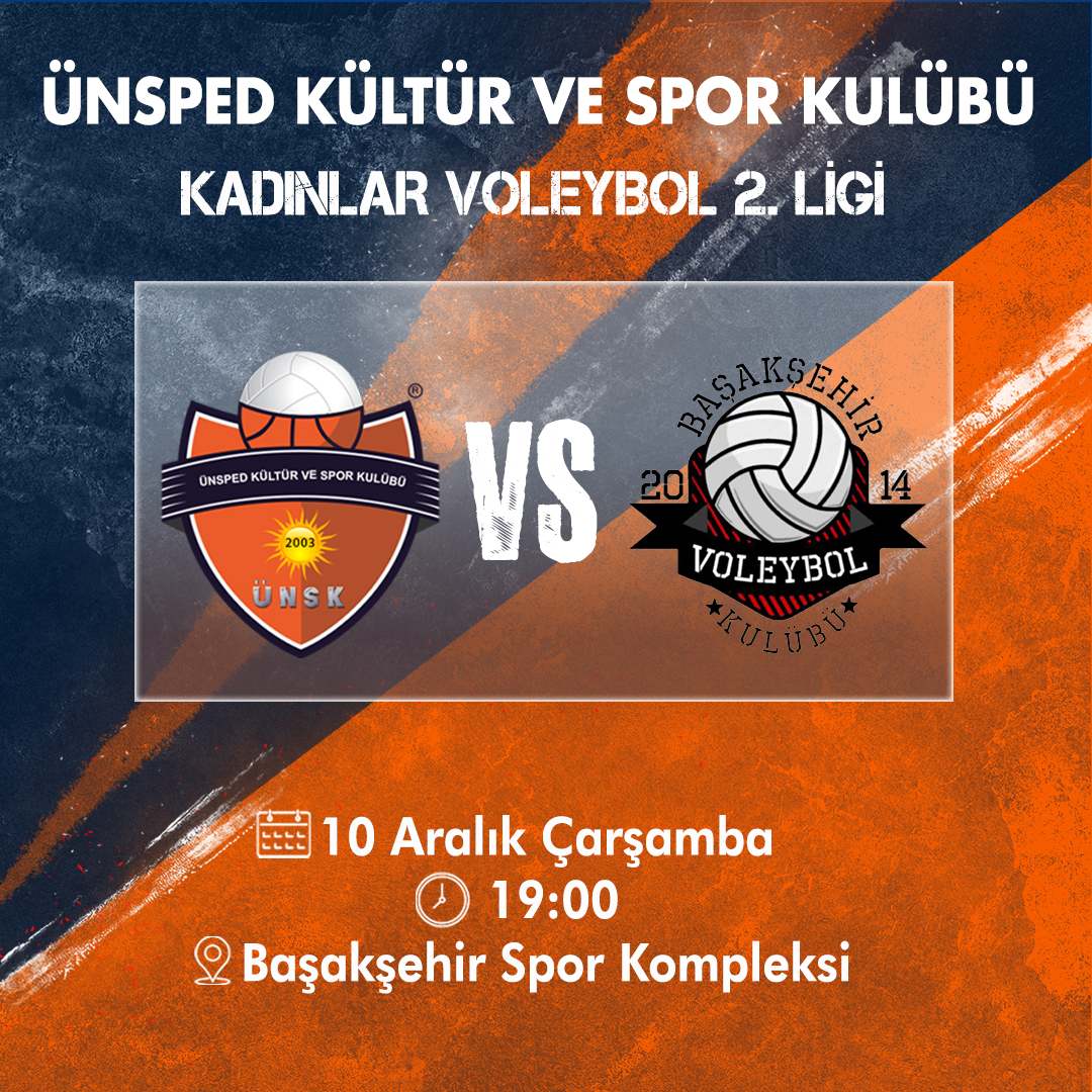 Kadınlar Voleybol 2.LigÜnsped Kültür ve Spor Kulübü VS Başakşehir Spor Kompleksi Tarih:10 Aralık ÇarşambaSaat :19:00Yer:Başakşehir Spor Kompleksi