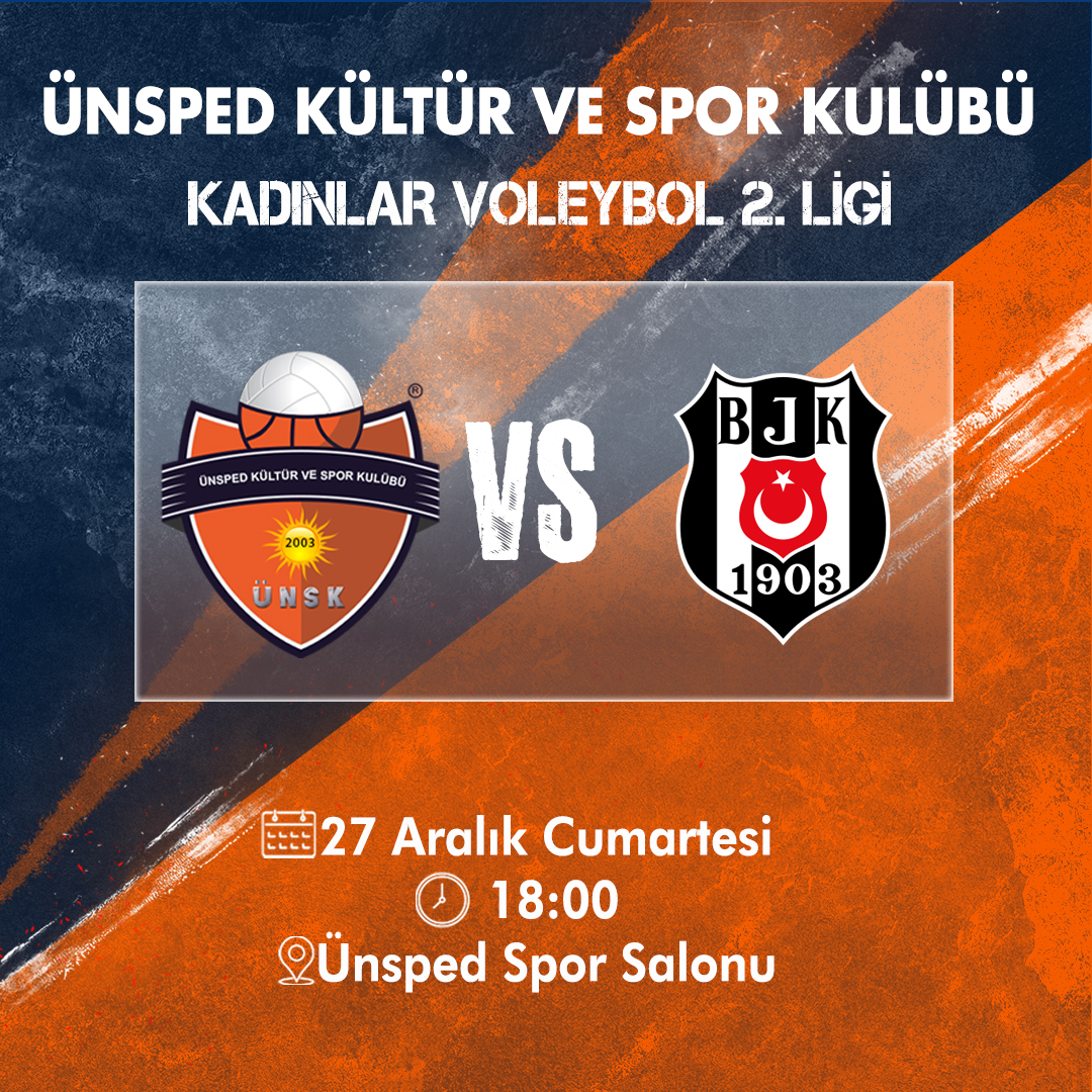 Kadınlar Voleybol 2. LigiÜnsped Kültür ve Spor Kulübü VS Beşiktaş Tarih :27 Aralık Cumartesi Saat : 18:00Yer: Ünsped Spor Salonu