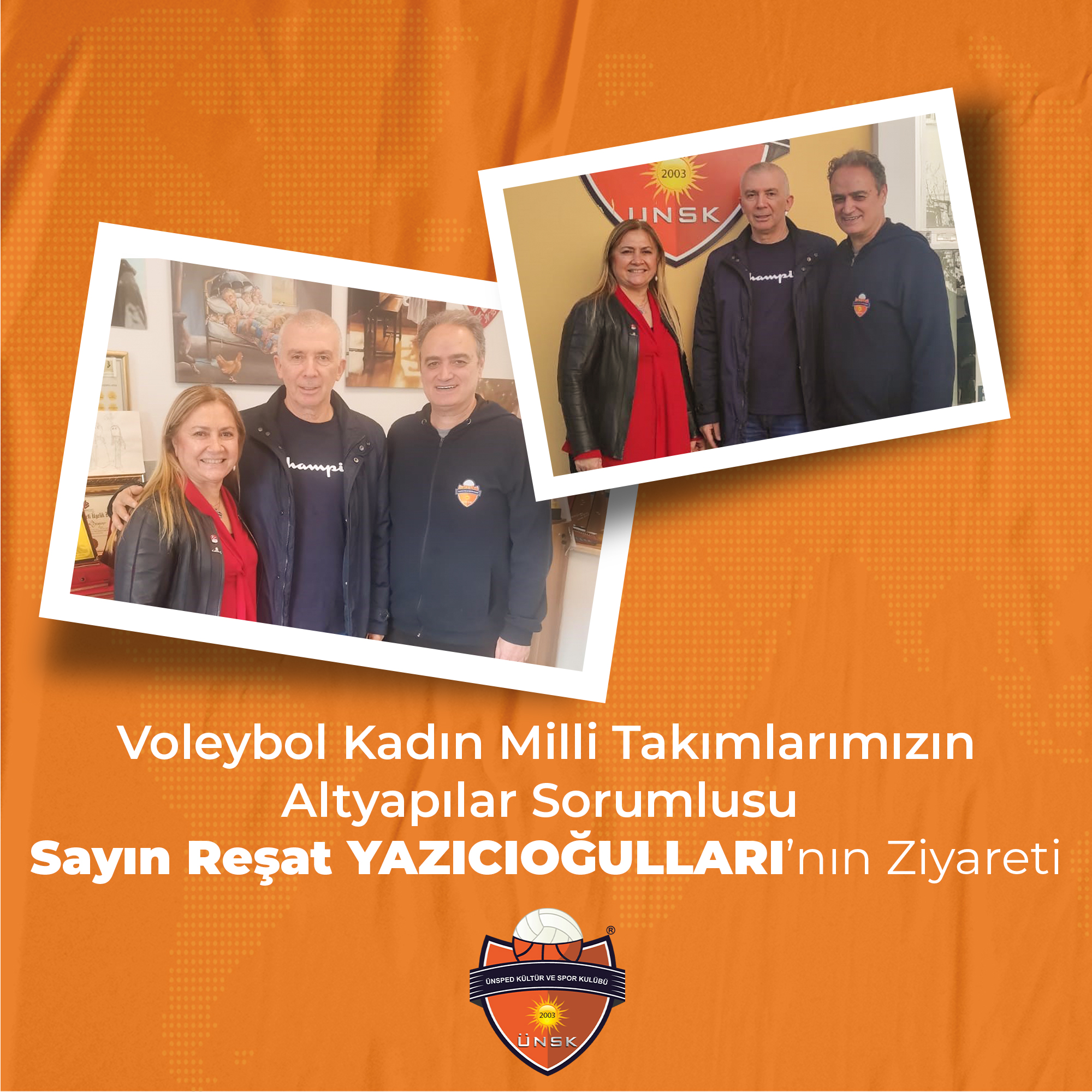 Voleybol Kadın Milli Takımlarımızın Altyapılar Sorumlusu Sayın Reşat Yazıcıoğulları Ünsped Kültür ve Spor Kulübümüzü ziyaret etti. Değerli hocamıza ziyaretinden dolayı teşekkürlerimizi sunuyoruz.